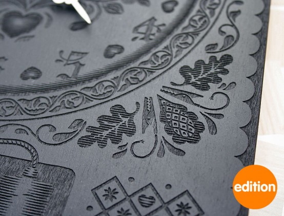 Every element of this wall clock is laser-etched a 3/8” thick piece of high quality Russian birch plywood and thanks to that we could admire on the fascinating pattern with floral motif. This old classic floral motif is beautifully accompanied by several sticks of dynamite, so this clock has touch originality and the fun too. Just the creative pattern design and perfect implementation make this clock an awesome wall decoration for any contemporary room. You could originally decorate a wall of you living room with charming clocks, Neverend. This wall clock has been created due to the collaboration of Furni and a wallpaper designer and artist, Dan Funderburgh. It presents itself as an awesome artwork with timeless design.
