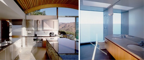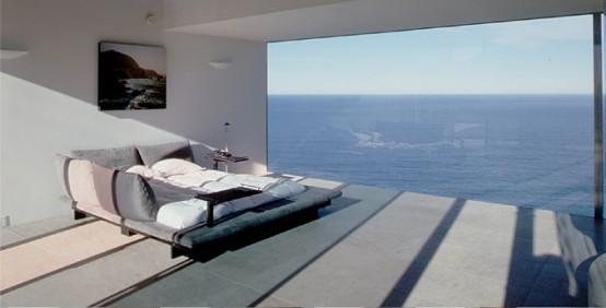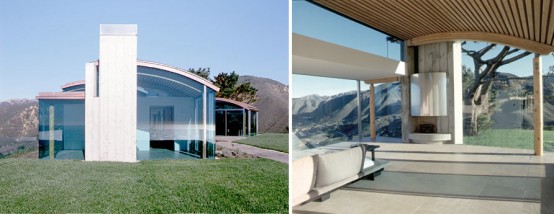 There are certain angles where you’re pretty much looking through the house like you almost don’t see it. It consists of walls of glass, floors of stone, supports of concrete and a roof of cooper. Even though most surfaces looks minimalist thanks to right angles and simple materials the natural elements add it a bit of coziness. The Division Knoll Residence is a great example of the architecture that is a vessel for looking at the view. It’s designed by Sagan Piechota Architecture in Big Sur, California. The whole house looks almost invisible thanks to chosen materials and very simple structure.